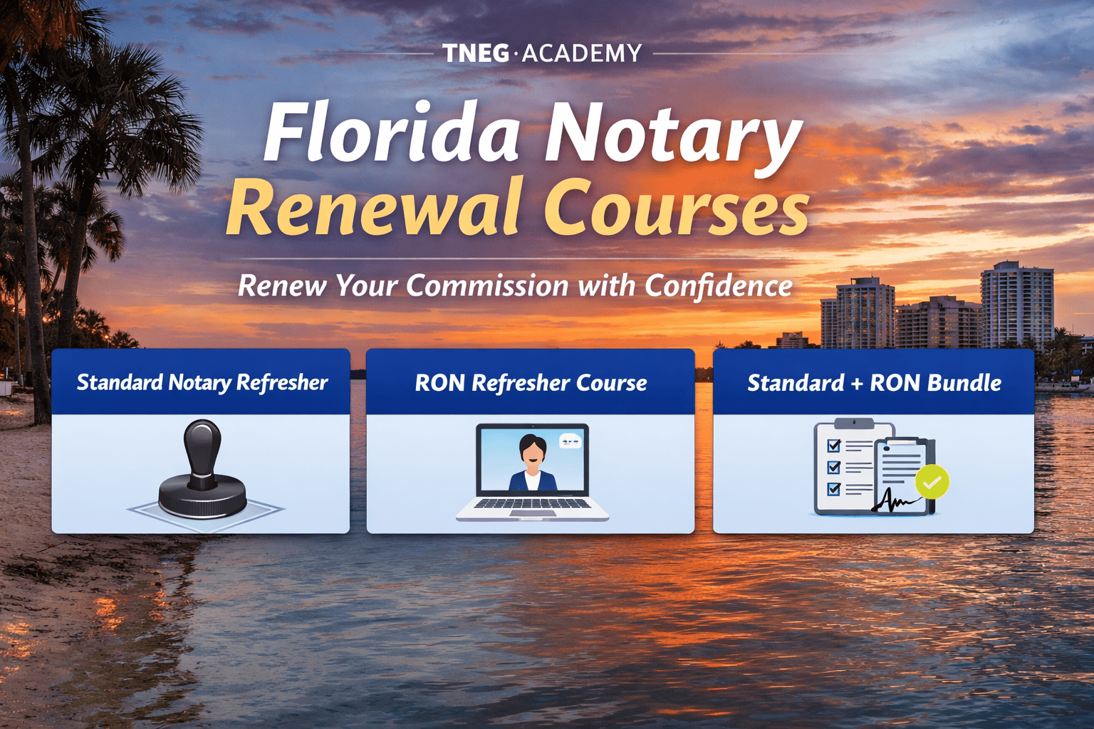 Yes. If you hold both a traditional commission and Remote Online Notary authorization, you can enroll in the Standard + RON Bundle to refresh both areas together in one streamlined training experience.